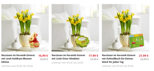- Narzissen im Keramik-Osterei mit Lindt Goldhase Blumen Edition für 16,99€ statt 18,99€ zzgl. Versand