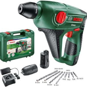 Bosch Akku Bohrhammer Uneo (2 Akku, 12 Volt System, max. Bohrtiefe in Beton 10mm, im Koffer) bei Amazon