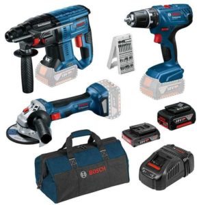 Bosch Blaues Bundle: Bohrschrauber + Bohrhammer + Flex + reichlich Zubehör
