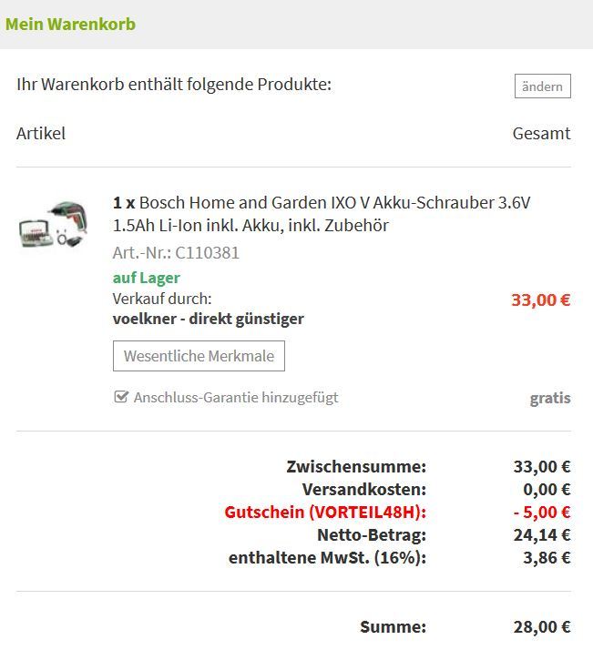 Um auf den Preis zu kommen den Gutschein VORTEIL48H im Warenkorb nutzen.