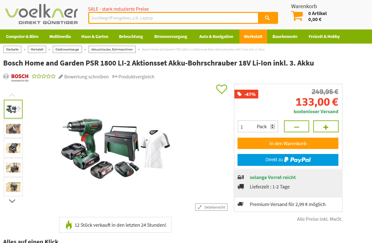 Bei Voelkner: Bosch Home and Garden PSR 1800 LI-2 Aktionsset Akku-Bohrschrauber 18V Li-Ion inkl. 3. Akku für 133 Euro inkl.Versand