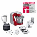 Bei Amazon dezeit die Bosch MUM5 MUM58720 CreationLine Küchenmaschine (1000 W, 3 Rührwerkzeuge Edelstahl, spülmaschinenfest, Rührschüssel 3,9 Liter, max Teigmenge 2,7kg, Durchlaufschnitzler 3 Scheiben, Mixaufsatz) rot für 156,99 statt PVG ab 181,00 Euro inkl.Versand