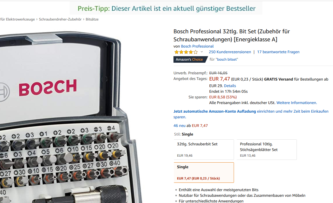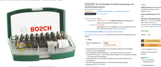 Bei Amazon Bosch Professional 32tlg. Bit Set für 7,47 statt 11,45 Euro inkl. Versand mit Prime.