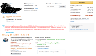 Amazon bekommt ihr mit dem 55 Euro Coupon Bosch Professional Tischkreissäge GTS 635-216 (1600 Watt, Sägeblatt-Ø: 216 mm, Sägeblattbohr-Ø: 30 mm, im Karton) für 344,45 statt PVG ab 469 Euro inkl.Versand