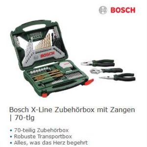 Auf IBOOd als Tagesangebot bekommt man die Bosch X-Line Zubehörbox mit Zangen 70-tlg für 35,90€ statt PVG ab 46,80€ inkl.versand