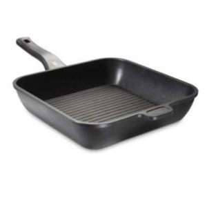 - Quadratische Grillpfanne aus Aluguss Für alle Herdarten einschließlich Induktion geeignet, auf dem Herd bis 250 °C hitzebeständig (im Backofen bis 70 °C)
