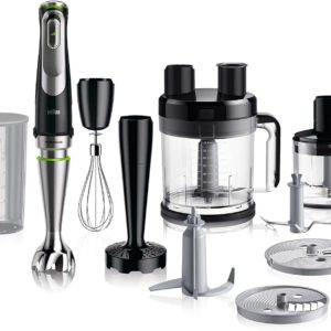 - LIEFERUMFANG: 1 x MultiQuick 9 MQ 9187XLI Stabmixer in Schwarz, mit Pürier-, Schneebesen- & Kartoffelstampferaufsatz, XL Küchenmaschine, Zerkleinerer und 600 ml Mixbecher von Braun
