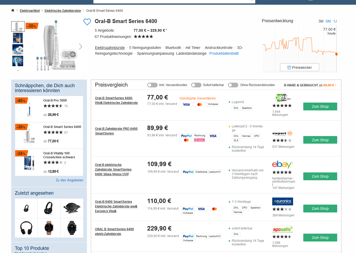 Auf 0815.eu bekommt man die Oral-B SmartSeries 6400, Weiß Elektrische Zahnbürste für 77,00€ statt PVG ab 94,00 Euro inkl.Versand