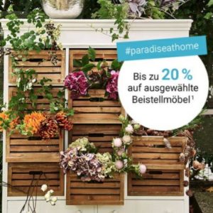Der paradiseathome-Vorteil gilt vom 28.-30.04.2020 im Butlers-Onlineshop in Deutschland und Österreich auf ausgewählte Artikel der Kategorie http://www.butlers.com/moebel und gewährt einen Rabatt von bis zu 20%. Die Aktion ist nicht mit Rechnungskauf, anderen Rabatten und Aktionen kombinierbar. Der reduzierte Preis ist bereits am Artikel dargestellt.