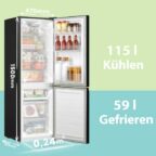 - 174L Kühlschrank mit Gefrierfach: 115L Kühlen + 59L Gefrieren