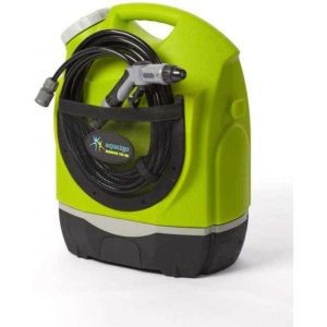 Aqua2Go – Perfekte Ergebnisse in verschiedensten Freizeitbereichen Technische Daten Kann überall verwendet werden, benötigt keinen festen Strom- oder Wasseranschluss Mit Wasserbehälter für 12-minütigen Dauerbetrieb Verstellbarer Sprühstrahl Abnehmbarer Tank für 17 Liter Wasser Ein vollgeladener Akku reicht für bis zu fünf Behälterfüllungen Für warmes Wasser bis 45° C Stromversorgung über integrierten Akku oder externen 12-Volt-Anschluss Sanft (12 Volt Kabel zum Anschluss an 12V im Auto) und Monsterh kraftvoll arbeitender Düsenkopf. 6 Meter langer Wasserschlauch Einschließlich Brausekopf und Langen Pinsel