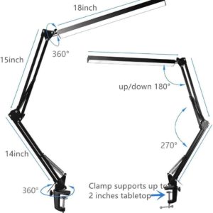 - Flexible Architekturlampe – 360 ° schwenkbare Lampe, 270 ° schwenkbarer Sockel, um 180 ° verstellbarer Metallarm, flexibler Arm bis zu einer Höhe von 29 Zoll und mit einem 5,6-Zoll-USB-Kabel. Was Sie bekommen Werden: 1 x Schreibtischlampe, 1 x Netzteil, 1 x Metallklammer (bis 5 cm) und 1 x Benutzerhandbuch.