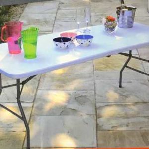 Die Gartensaison ist zwar vorbei. Aber einen Klapptisch kann man auch zu Hause gut gebrauchen. Wenn z.Z. auch schwierig, kann bei Familienfeiern schnell mal das Kaffeebuffet erweitert werden und danach im Keller verstaut werden.