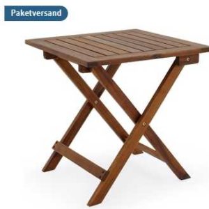 Besondere Produktvorteile: massiver Holztisch aus vorgeöltem Akazienholz elegante Holzmaserung mit besonderer Farbgebung zusammenklappbar & platzsparend Maße (LxBxH): 46 cm x 46 cm x 46 cm universell einsetzbar für Küche, Garten, Terrasse oder Balkon