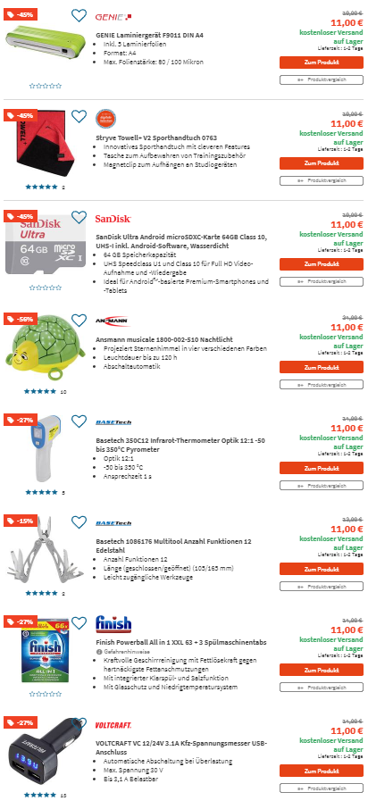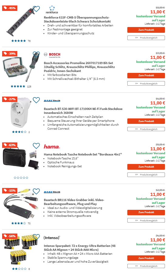 Bei Digitalo läuft aktuell die 11€ Knaller Aktion mit Gratis Versand bei der Ihr ausgewählte Artikel zum Sonderpreis von 11€ und Versandkostenfrei ergarttern könnt.
