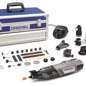 - Lieferumfang: Dremel 8220, 2x 2,0 Ah Akku, 65 tlg. Zubehör, Präzisionshandgriff, Modellierungstisch, Kreis-und Parallelschneider, Fräsvorsatz, Schutzhauben-Vorsatz, Ladegerät, Aluminium-Werkzeugkoffer