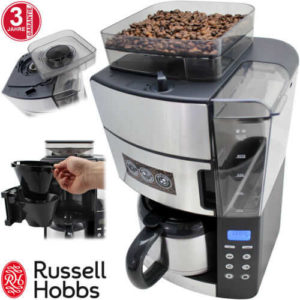 Frisch gemahlener Kaffee und dann frisch aufgebrüht ist etwas für Kaffeegenießer. Die entsprechende Kaffeemaschine gibt es bei eBay für 109,99€ (VSK-frei). Es handelt sich dabei um die Russell Hobbs Grind & Brew Thermo Edelstahl Kaffeemaschine Mahlwerk Kaffeemühle.