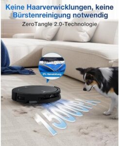 Kraftvolle Saugleistung: 💨🌪️ 15.000 Pa Saugkraft verschlingt feinen Schmutz und groben Dreck nahezu hurrikanartig. Die ZeroTangle 2.0-Technologie mit dreifachen V-förmigen Strukturen sammelt, hebt und entwirrt Haare aktiv – selbst lange Haare bleiben mit nahezu 0% Verwicklungsrate hängenfrei.