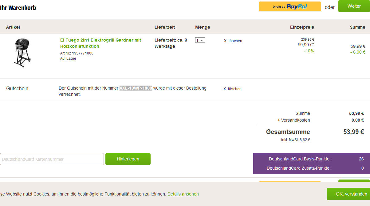 Tayfun 21.09.2019, 10:20 #Screen mit dem Gutscheincode (warenkorb).