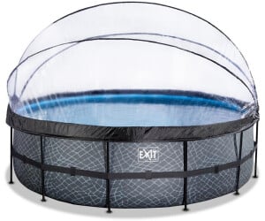 Aufstellpool Framepool-Set EXIT StonePool rund Ø 488×122 cm inkl. Sandfilteranlage, Abdeckung & Leiter Steinoptik