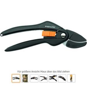 Für Gartenfreunde bei Amazon bekommt man derzeit den Fiskars Amboss-Gartenschere für trockene Zweige und Äste, Antihaftbeschichtet, Hochwertige Stahl-Klingen, Länge 19,8 cm, Schwarz/Orange, SingleStep, P25, 1000564 für 4,86€ statt PVG ab 7,48€ inkl.Versand mit Prime