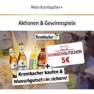 Freebie möglich Krombacher Kaufen und 5€ Wunschgutschein erhalten.