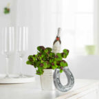 Überraschen Sie liebe Freunde zum Jahreswechsel mit einem besonderen Präsent. Der zauberhafte Glücksklee vereint alle guten Wünsche und kommt von Herzen. Die Pflanze befindet sich in einem passenden Sektkühler aus PE-Material und ist mit einer kleinen Flasche Champagner verziert – ein symbolisches Geschenk, das gut ankommt. Unterstrichen wird das Neujahrsgeschenk durch ein köstliches Hufeisen zum Vernaschen. Der klassische Glücksbringer ist aus belgischer Vollmilchschokolade gefertigt und in glänzendes Stanniol verpackt. Bei so vielen guten Wünschen lässt das Glück nicht lange auf sich warten.