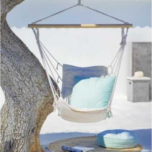 Entspannung pur für den Sommer – dieser trendige Hängesessel sorgt für gemütliche Stunden im Freien. Der ca. 100 x 47 cm (B x L) große Hängesessel mit einem robusten Gestell aus Holz