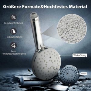 - 【Stabiler Wasserabfluss】 Die Hochdruckkonstruktion der Handbrause sorgt für einen gleichmäßigen und angenehmen Wasserfluss, was sehr entspannend ist. Nach einem stressigen Tag können Sie sich in dieser Hochdruckdusche mit 5 Strahlarten entspannen und das Wasser fließen lassen.