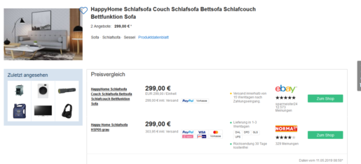 Bei Norma mit dem Gutscheincode: SPARDICHREICH50 Happy Home Schlafsofa HSP05-Hellgrau für 154,45 statt PVG 299,00 Euro inkjl.Versand