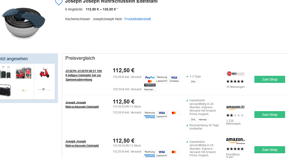 Bei ibood als Tagesangebot bekommt man den Joseph Joseph 100 Collection: 9-teiliges Schüsselset für 65,90 statt PVG ab 112,50 Inkl.Versand