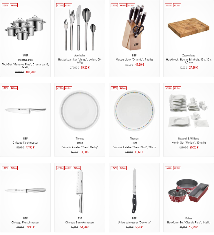 Bei Kaufhof findet man aktuell ausgewählte Marken aus dem Küchensortiment 20% reduziert.