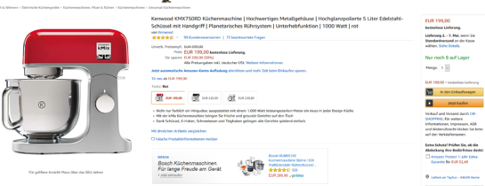 Tayfun 18.04.2019, 15:43 #Kenwood KMX750RDi Küchenmaschine jetzt für 199 Euro zu haben!