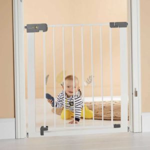 Das Safety 1st Quick Close+ ist ein praktisches Türschutzgitter aus Metall, das mittels einer Klemmbefestigung angebracht wird. Kein Bohren und Schrauben notwendig, so dass es insbesondere in Mietswohnungen ohne Schäden an der Wand wieder entfernt werden kann. Das breite Sicherheitsgitter lässt sich in beide Richtungen öffnen und ist einfach zu handhaben. Ein doppelter Schließmechanismus sorgt für zusätzliche Sicherheit. Das Sicherheitsgitter ist für Durchgänge zwischen 73 cm und 80 cm geeignet, kann aber durch separat erhältliche Verlängerungen auf bis zu 136 cm verbreitert werden.