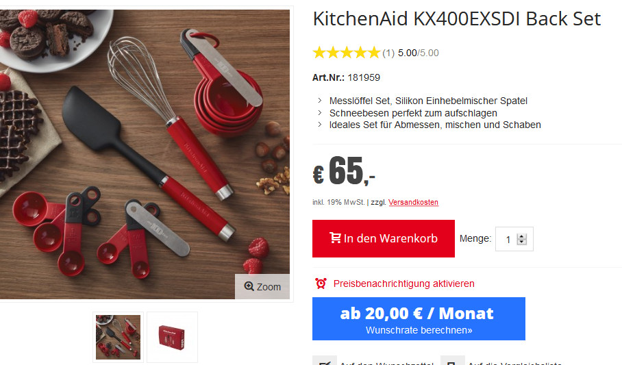 Bei electronic4you bekommt man das Kitchenaid 5KSM175PSEBF Küchenmaschine 4.8L gusseisen Butterblume + KitchenAid Back Set gratis dazu für 353,99 Euro (PVG ab 504,00 Ohne Back set inkl.Versand)