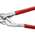Glatte Backen für die schonende Montage von oberflächenveredelten Armaturen – Arbeiten direkt auf Chrom!. Ersetzt einen Satz Schraubenschlüssel, metrisch wie zöllig. mit schmalen Greifbacken – für Schraubsituationen, die ein schlankes Werkzeug erfordern Auch hervorragend geeignet zum Greifen, Halten, Pressen und Biegen von Werkstücken. Keine Kantenbeschädigung bei empfindlichen Armaturen durch spielfreie, vollflächige Anlage. Schnelleinstellung per Knopfdruck direkt am Werkstück. Keine unbeabsichtigte Verstellung der Greifbacken und kein Durchrutschen des Gelenks. Stufenloses Greifen aller Schlüsselweiten bis zur angegebenen Kapazität mittels parallel geführter Backen. Der Hub zwischen den Greifbacken ermöglicht ein schnelles Anziehen und Lösen von Schraubverbindungen nach dem Ratschenprinzip. Hohe Klemmkraft durch 10-fache Handkraftverstärkung. Chrom-Vanadin-Elektrostahl, geschmiedet, ölgehärtet