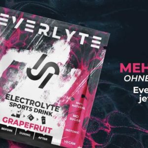 Everlyte ist ein elektrolytehaltiges Sportgetränk in Pulverform zum anmischen in einer Trinkflasche. Das Getränk besteht aus den Elektrolyten Natrium, Chlorid, Kalium, Calcium und Magnesium, beinhaltet keinen Zucker und zu 100% natürliche Zutaten. Everlyte soll vor allem beim Sport unterstützen und Deydration, Leistungsabfall und schlechte Regeneration vermeiden.