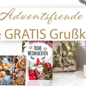 Zu den 5 € Rabatt bekommt man on Top eine kostenlose Grußkarte dazu. Die Advents-Grußkarten stehen innerhalb des Bestellprozesses für 0,00 € zur Verfügung.