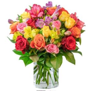 Ein wahrer Glücklichmacher der zu jedem Anlass passt! Das Farbspiel aus bunten Rosen und Inkalilien passt perfekt zusammen und kreiert einen Strauß mit über 100 Blüten.