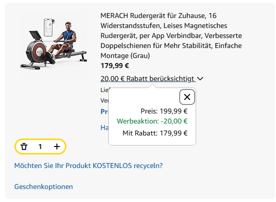 MERACH Rudergerät für Zuhause für 179,99€ statt 259,99€.