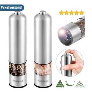 Monzana Elektrische Salz- und Pfeffermühle mit Keramik Mahlwerk, LED Licht, aus Edelstahl für 9,96€ inkl. Versand.