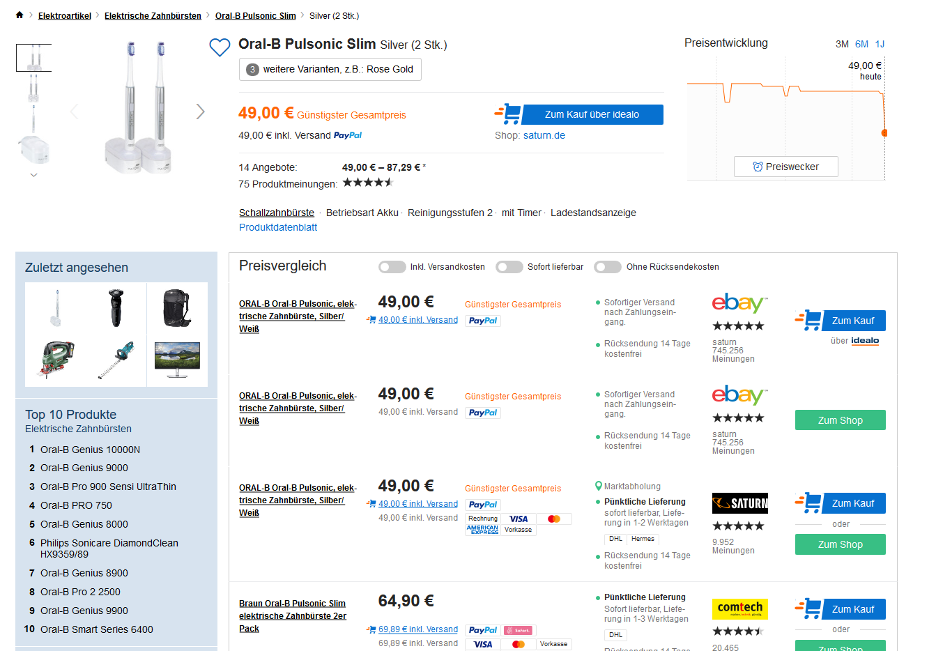Bei Saturn Oral-B Pulsonic Slim Duo, elektrische Zahnbürste, Silber/Weiß für 49,00 statt PVG 69,89 Euro inkl.Versand