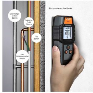 - 【VIELSEITIGES UND PRAKTISCHES DESIGN】 – Automatischen Abschaltfunktion ausgestattet – Es wird automatisch ausgeschaltet, wenn innerhalb von 5 Minuten kein Vorgang ausgeführt wird. Mit tragbare Schutztasche. Es ist ein perfektes Werkzeug für Klempner, Tischler, Maurer, Haus Renovierer, Bauarbeiter, Elektriker, Heimwerker und andere, die zuverlässige Erkennung benötigen