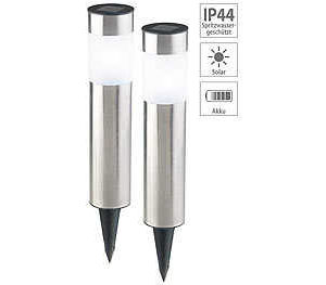 Mit dem Lunartec 2er-Set elegante Solar-LED-Wegeleuchten aus Edelstahl, mit Lichtsensor habt Ihr schon mal einen kurzen Weg ausgeleuchtet.