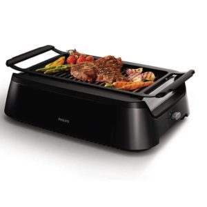 Der raucharme Tischgrill von Philips bietet den einzigartigen Vorteil, dass Sie das ganze Jahr über leckere,gleichmäßig gegrillte Speisen genießen können. Dank der fortschrittlichen Infrarotheiztechnologie entsteht bis zu 80 % weniger Rauch und eine geringe Spritzerentwicklung.