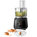 Die Daily Compact macht ihrem Namen alle Ehre. Mit ihren kompakten Maßen findet sie in jeder Küche Platz. Das Zubehör findet bequem Platz in der 1,5 Liter fassenden Schüssel.