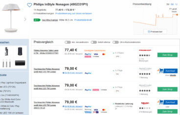 Bei IBOOD bekommt man als Tagesangebot die Philips Nonagon dimmbare Tischlampe, 7 W , 12 V für 45,90 statt PVG ab 82,00 Euro inkl.Versand.