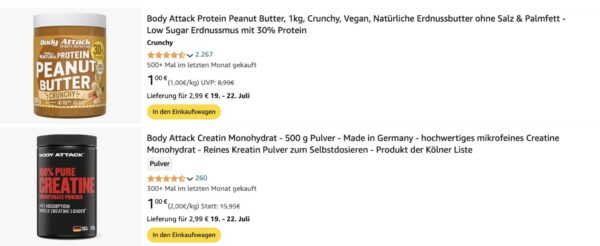 PREISFEHLER: Alles für 1€ bei Body Attack über Amazon ✔️ Protein, Creatin, Whey, Drops uvm.