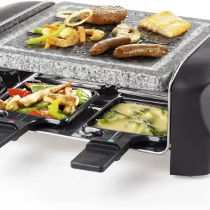 Die Steingrill/Raclette-Kombination hat die perfekte Größe für ein gemütliches Abendessen mit 2 bis 4 Personen.