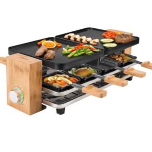 Princess Raclette Grill in Bambusausführung – für bis zu 8 Personen, regelbare Heizstufe, 2 m Kabelzuleitung, 1200 Watt, inkl. Holzspatel